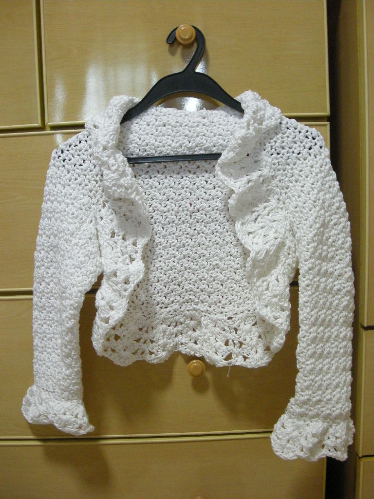 I almost completed a white color shrug for my niece. The pattern was taken from a crochet book. I chose a 100% cotton yarn due to the weather in Singapore was too hot for wool material. However due to the weight of the yarn, the completed project was kind of heavy. I’ve used 4 rolls of 100g yarn. You can see how heavy it could be. 😛