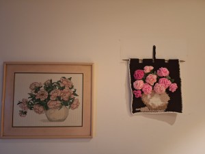Cannot remember where I got the crochet design from. Was it a purchase or a gift? But I had the crocheted workpiece done more than 30 years ago. Could be a piece of cross stitch done during my early days when I was hooked onto cross stitching. well it is now hanged onto the wall of my living room and I almost glanced at it every night while I was watching TV at the living room.