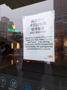 I traveled to Taipei 101. I found other travelers like me standing at the door of Taipei 101 with disappointed faces. The mall had closed for the stormy weather too.